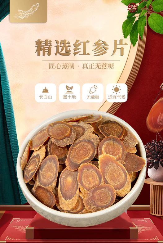 长白山红参片正宗不加糖参类批发 古法蒸制整枝 多规格红参切片 数量
